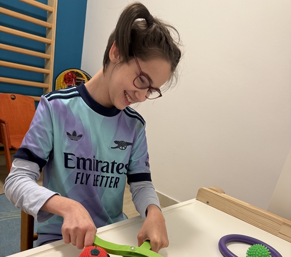 Szakképzett terapeuta vezetésével a fejlesztés során finom, célzott gyakorlatokkal erősítjük a kéz izmait, javítjuk az ujjak ügyességét, valamint a szem és kéz összehangolt működését. A foglalkozások személyre szabottak és játékos formában zajlanak, így motiváltan és hatékonyan segítik a fejlődést. A kézterápia támogatja a gyermek önállóságát, önbizalmát, és hozzájárul ahhoz, hogy a mindennapi tevékenységeket minél könnyebben és magabiztosabban végezhesse.